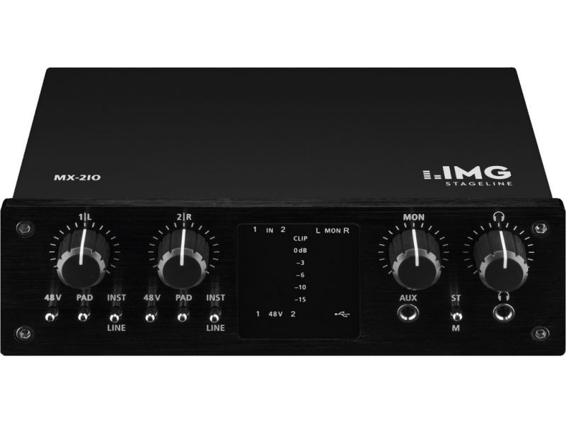 delamar.de"An easy-to-connect USB audio interface with two inputs and outputs each. Despite its compact size, the MX-2IO from IMG STAGELINE impresses with versatile input and output options. Any kind of microphone, instrument or audio player can be fed in and [...] be recorded. The LED chains for indicating the level of every path are quite unique in this class. Layout, haptics and neat workmanship are impressive. Last but not least, both the sound and output power of the headphone amplifier are absolutely perfect. Despite the missing monitor mixing option of the analogue input and DAW signals, it is a really neat little interface."