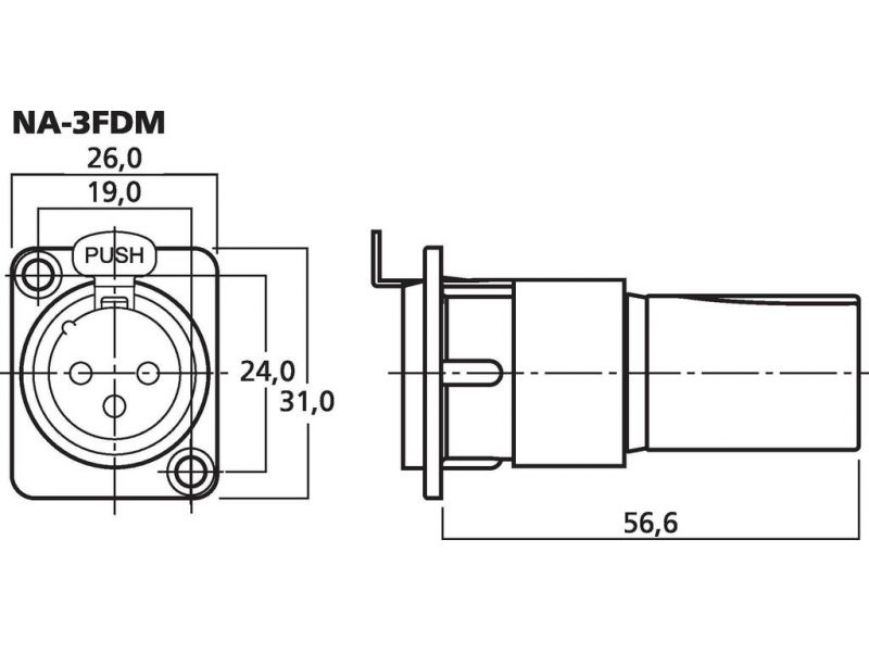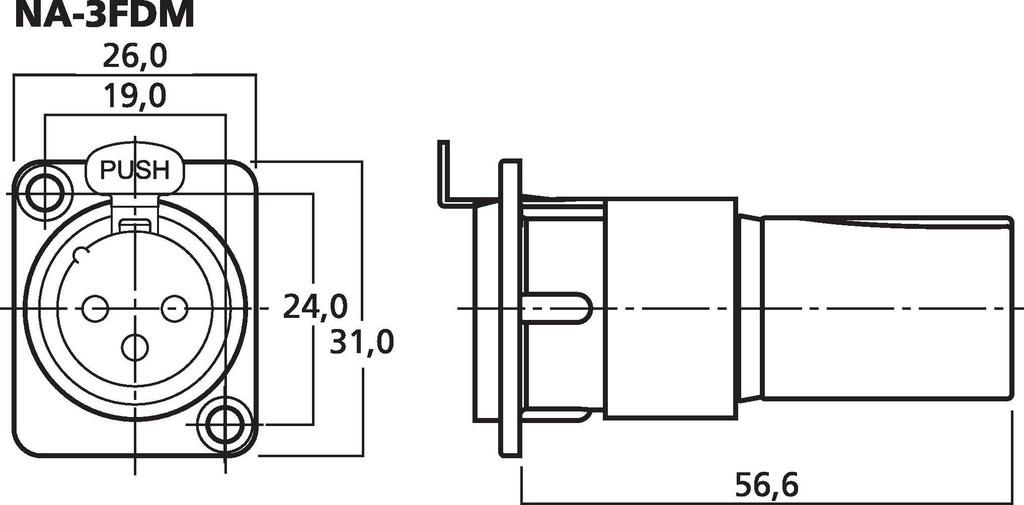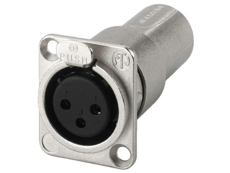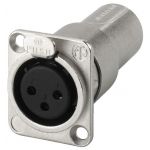 NEUTRIK XLR adaptér na panel, 3 pólový Na spájkovanie v racoch Smer prietoku: XLR jack/XLR plug D série Poniklované kovové telo