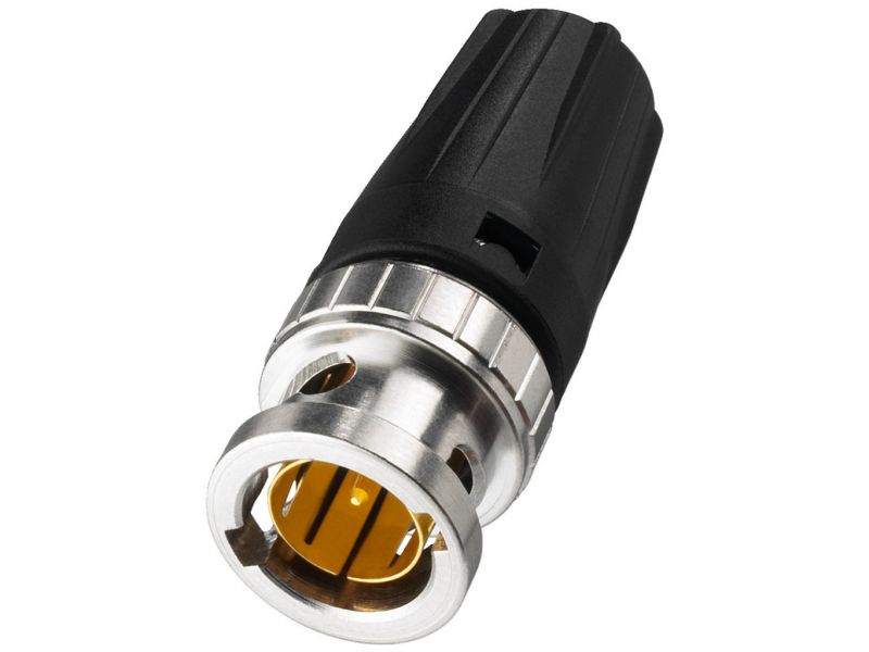 BNC konektor, 75 Ω Pre káblle: Ø 6.9 mm Vysoko kvalitná PTFE izolácia Pozlátené kontakty Stredový kolík na krimpovanie Špeciálne vhodný pre HD-SDI aplikácie