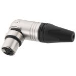 NEUTRIK XLR spojka, 3 pólová, pravý uhol. Poniklované celokovové telo Tenký dizajn 5 voliteľných polôh výstupných káblov (0°, ± 45°, ± 90°) Pre káble: Ø 3.5-8 mm