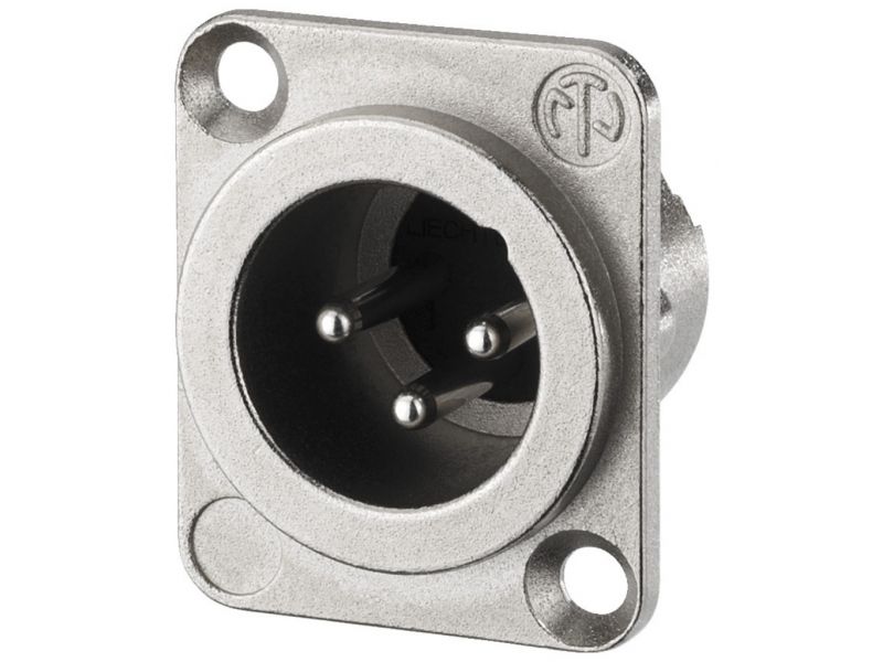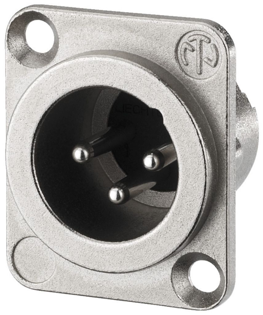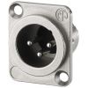 NEUTRIK XLR panelová zástrčka, 3 pólová Strieborná úprava kontaktov Celokovové telo, pochrómované čierne Dvojitý kontakt uzemnenia D série