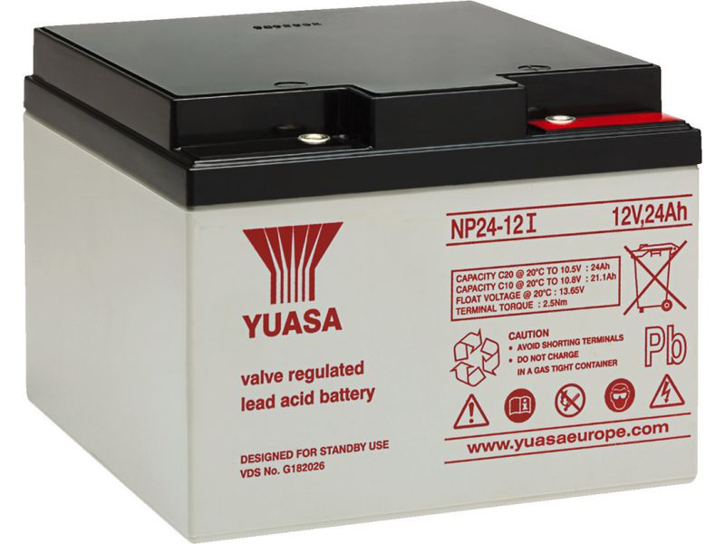 Rechargeable lead-acid battery (VRLA), 12 V, 24 Ah Extra high capacity, suitable for commercial use Can be installed and operated in any position, apart from continuously upside down Low-pressure valve for every battery for compensating the gas press...