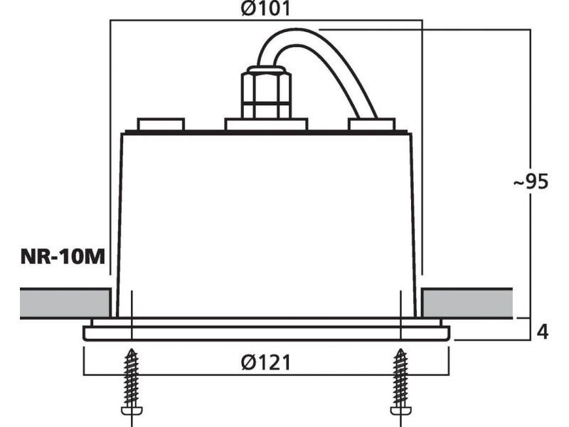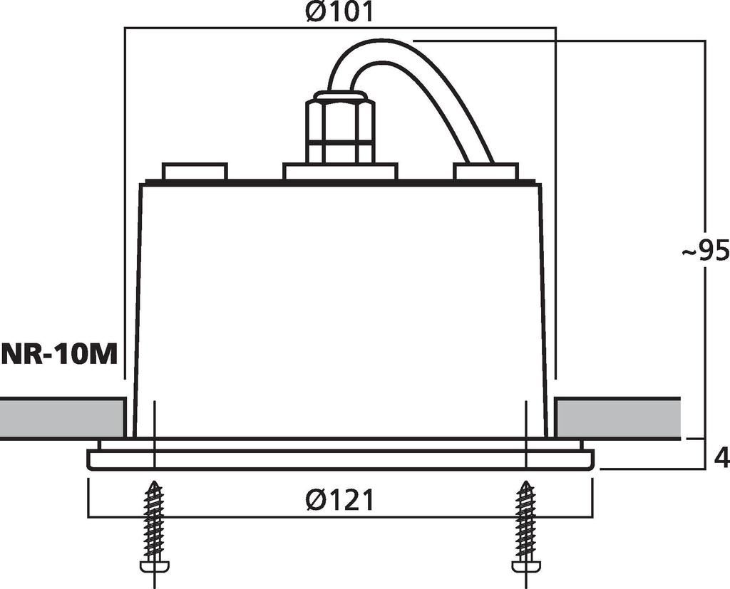 Zapustený hornový reproduktor (hudobný klaksón) s reproduktorom celého rozsahu, 4 Ω Pre montáž do steny a stropu Po inštalácií odolný voči poveternostným vplyvom a certifikovaný IP54 4 Ω reproduktorový systém 5 cm (2.5") reproduktor s plným rozsahom s p...