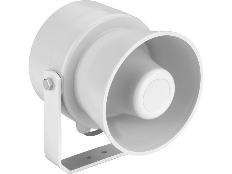 Tlakový reproduktor, odolný voči počasiu s vysokým výkonom. 16 Ω reproduktorový systémIP66, ochrana proti silnému prúdu vodyVhodný pre všeobecné použitie v interiéri a exterirériRobustné sivé plastové puzdroHliníková montážna konzola