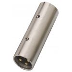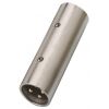 Adaptér XLR samec/XLR samec Poniklované kovové telo Pozlátené XLR kontakty Nie je vhodný na použitie v reproduktoroch!