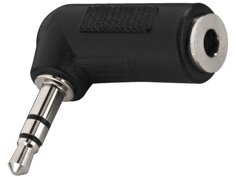 Adaptér, pravouhlý 3.5 mm stereo samec na 3.5 mm stereo samicu.