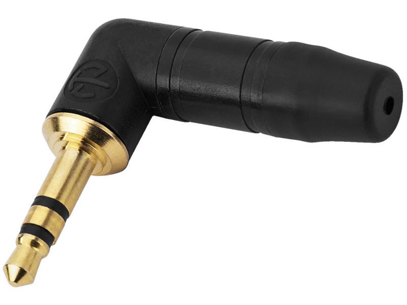 3.5 mm stereo samec, pravouhlý Pozlátené kontakty Čierne telo Odľahčenie ťahu Pre káble až do: Ø 4.5 mm