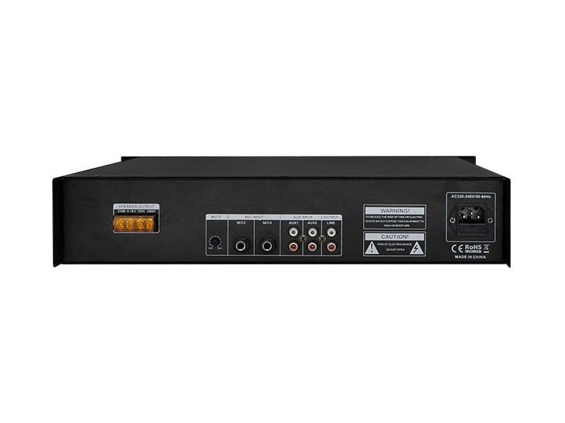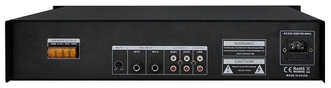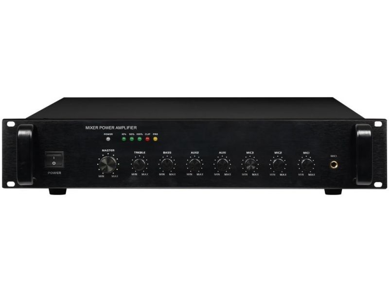 Univerzálny, mixážny zosilňovač 1 x 120 Wrms 3 mikrofónové vstupy Mic 1 s prioritným okruhom a automatickým talkover 2 aux vstupy Reproduktorové výstupy 100V/4-16Ω cez skrutkovacie terminály Linkový výstup Ovládače vstupných a v...
