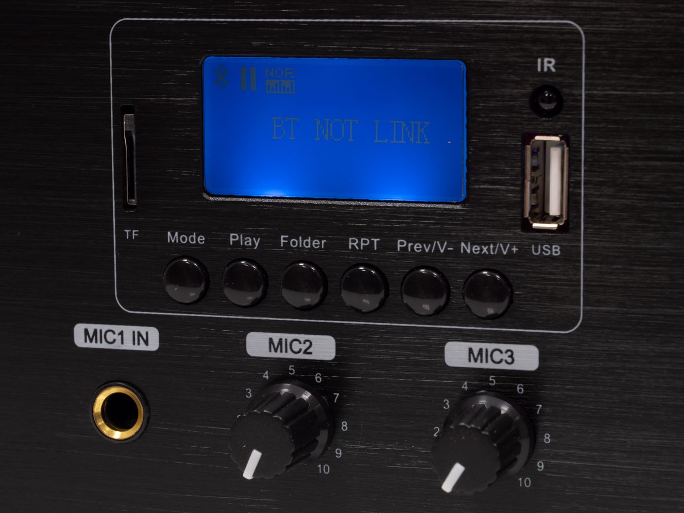 | Media player | MP3 via USB and SD, FM tuner, bluetooth |