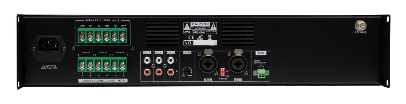 je navrhnutý pre malé 3-zónové komerčné audio riešenia, každý zónový reproduktor môže byť nastavený na inú výstupnú hlasitosť. 19” rackový mixážny zosilňovač so zabudovaným prehrávačom audio zdrojov integruje radič zónového pagingu, predzosilňovač, výkonový zosilňovač a prehrávač médií do jedného zariadenia s výškou 2U, jeho menovitý výkon je 120W, 240W, 350W až 500W, je dodávaný s 3 mikrofónnymi a 2 pomocnými vstupmi. Podporuje aplikácie reproduktorov 100V/70V a 4-16 Ohm.