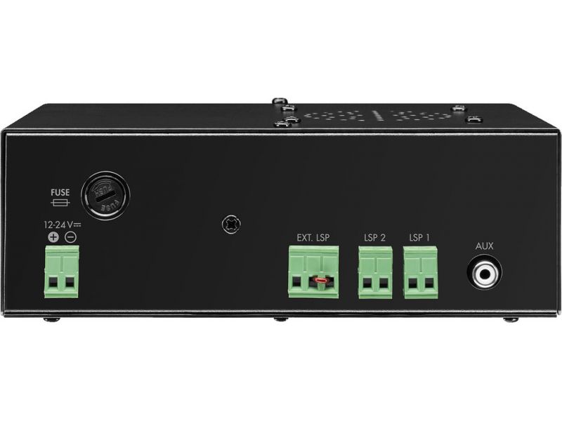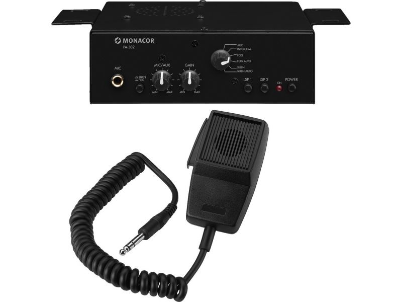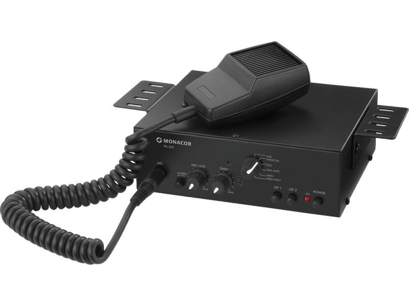 Mono PA mixážny zosilňovač 14 W. 1 mikrofónny vstup a 1 linkový vstup, nastaviteľný 2 reproduktorové výstupy, prepínateľné Zabudovaný reproduktor Možné použitie aj ako interkom systém Dodávané s ručným mikrofónom push-to-talk Siréna a hmlový klaksón, a...