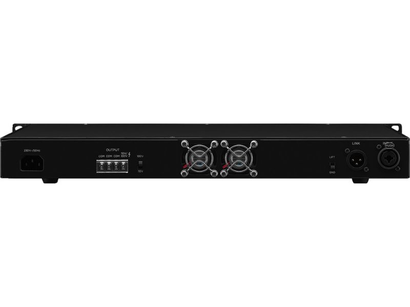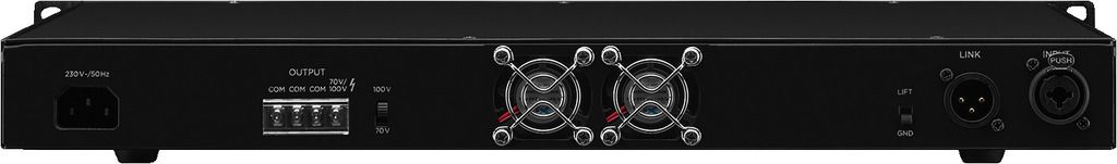 Mono PA výkonový zosilňovač 1 x 240 W Teplotne ovládaný ventilátor, plynule nastaviteľný Chránený proti prehriatiu, preťaženiu a skratu LED indikácia pre clip, protect, prehriatie, výstupný úroveň a 100 V/70 V Výstupný výkon (link) Reproduktorové výstup...
