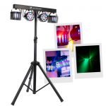 BoomToneDJ Party Bar Derby Set consisting of 2 LED spotlights and 2 Nano Derby fixed on a horizontal bar and a tripod Each spot is composed of 9 RGBW LEDs of 1W each The Nano Derby are equipped with 4 3W RGBW LED Many automatic programs for gr...