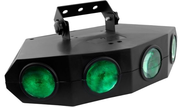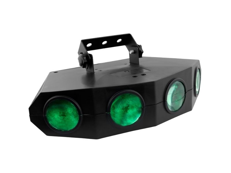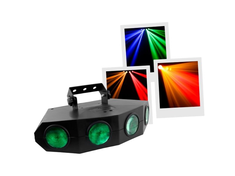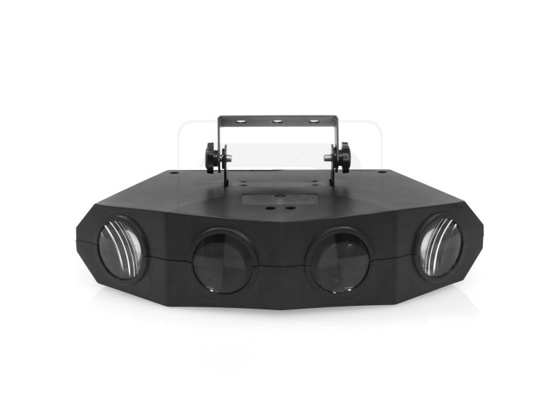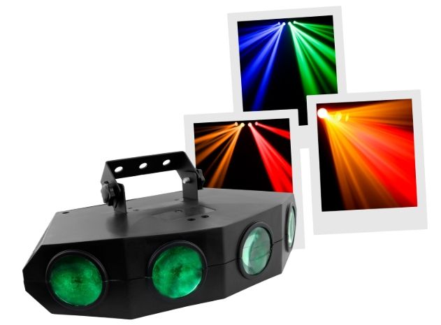 Moonflower LED light set with 4 lenses. 128 LEDs 5mm RGBA (20 red, 36 green, 36 blue, 36 amber). An additional color effect thanks to its transparent case. A very wide diffusion angle, intense colors and quality auto programs. Plug & Play...