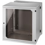 Nástenná skriňa, 12 U, pre 482 mm (19") zariadenia. Pohyblivá stredná časť Oceľový plech Svetlosivý práškový náter (RAL 7035) Uzamykateľné predné dvierka s bezpečnostným sklom Dvere je možné otvárať doprava alebo doľava Max. montážna hĺbka za prednou d...
