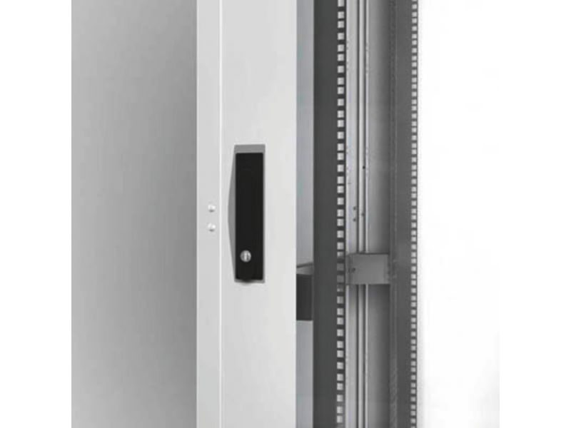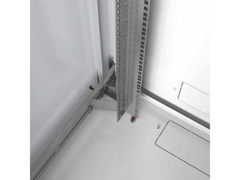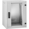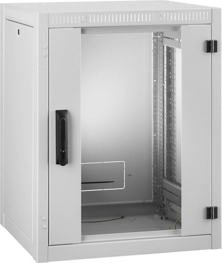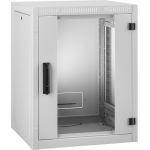 Skrinka, 15 RS, pre 482 mm (19") zariadenia. Oceľový plech Svetlosivý práškový náter (RAL 7035) Predné dvere s bezpečnostným sklom a otočným zámkom rukoväte Závesy sa dajú ľahko vymeniť a dvere sa dajú otvárať doľava alebo doprava Bočné steny a zadnú s...