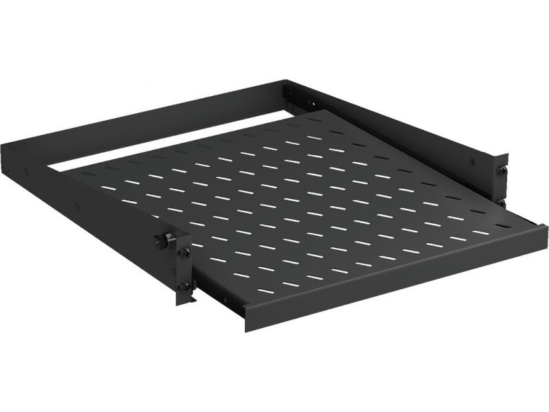 Pull-out mounting plate, for rack installation, 2 RU Solid steel version Complete pull-out, ball-bearing, max. load: up to 20 kg Black powder coating (RAL 9005)Dimensions: 482 x 89 x 455 mm Mounting plate for installation into 19" cabinet, shee...