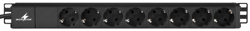Zásuvková lišta pre montáž do racku, s podsvieteným hlavným vypínačom na prednom paneli a 8 uzemnených zásuviek na zadnom paneli. Zásuvky otočené o 45° Čierny hliník Odnímateľné montážne konzoly umožňujú opačnú montáž 2 m pripájací kábel s uzemnenou zás...