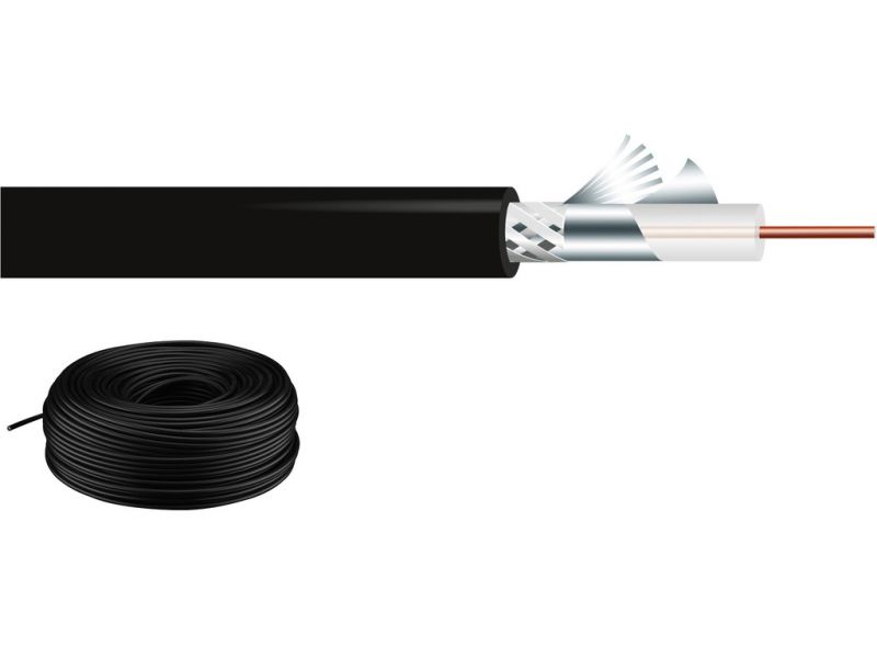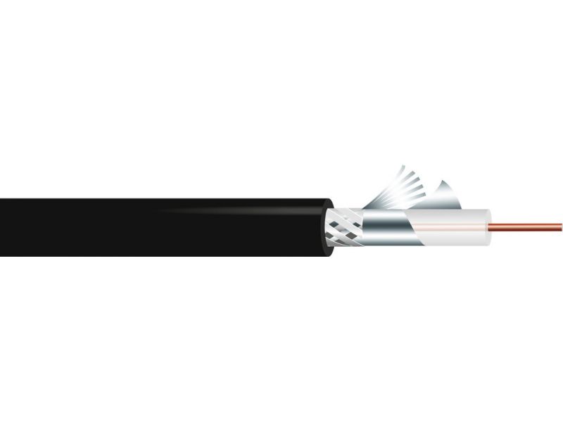 Koaxiálny kábel, 100 m, 50 Ω Vnútorný vodič vyrobený z tuhej medenej ocele, Ø 0.6 mm Dvojité tienenie pre dostatočnú ochranu na veľké vzdialenosti PVC plášť, Ø 5 mm, čierny Zodpovedajúca krimpovacia zátka BNC-88/RG58 je dostupná v ponuke
