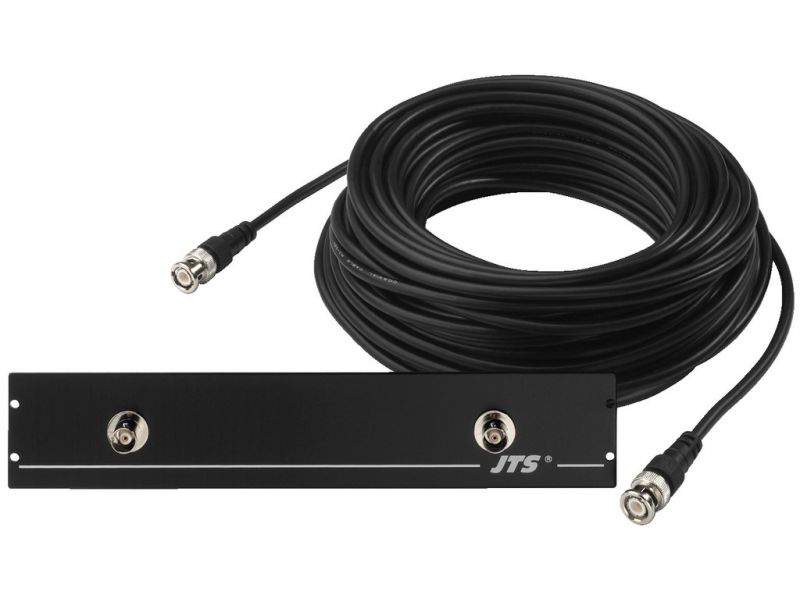 Koaxiálny anténny kábel, s montážnou platňou. 2 x 20 m RG-58U koaxiálny kábel s 2 x BNC plug, napr. pre zapojenie odsadených antén na príslušný UHF PLL prijímač série UF/US/IN alebo in-ear monitorovacieho vysielača SIEM-111/R Montážna platňa (1 U) s...