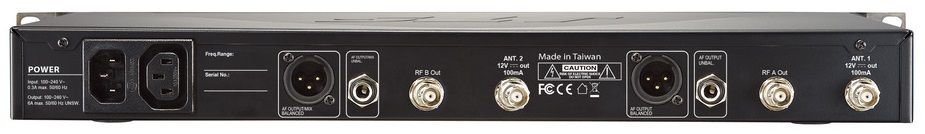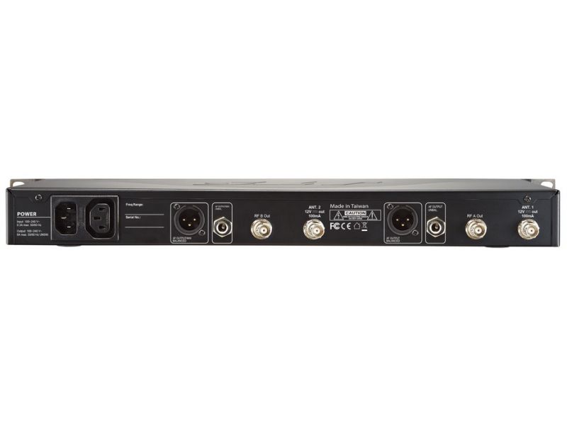 2-kanálový diverzitný UHF PLL širokopásmový prijímač Šírka pásma: 36 MHz 6 skupín, každá až s 22 kompatibilnými predvolenými kanálmi 1,441 voliteľných individuálnych frekvencií REMOSET ULTRASONIC technológia pre synchronizáciu prijímača s vy...