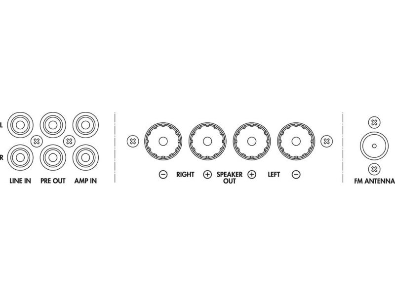 | Connections | 1 x RCA L/R (line), 1 x XLR/6.3 mm jack (mic), 1 x 3.5 mm jack (aux), 1 x RCA L/R (amp in), 1 x RCA L/R (amp out), screw terminals (speakers) with 4 mm banana jack |
