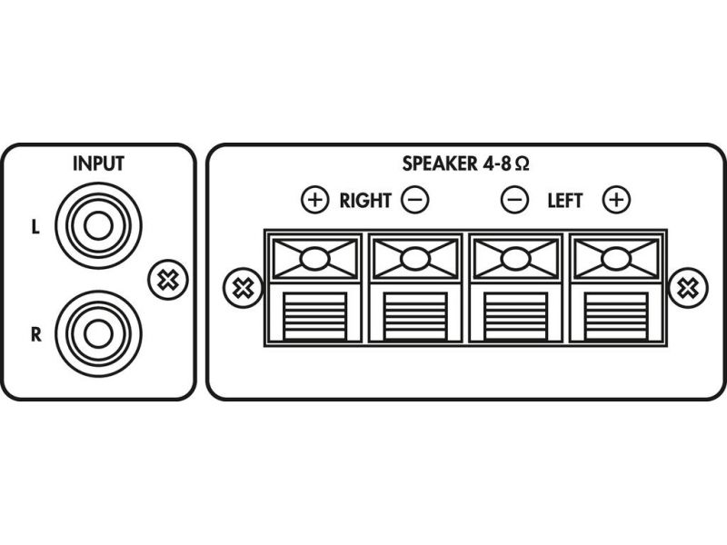 | Connections | 1 x RCA L/R (line),4 x spring-load. speaker term.(speakers) |