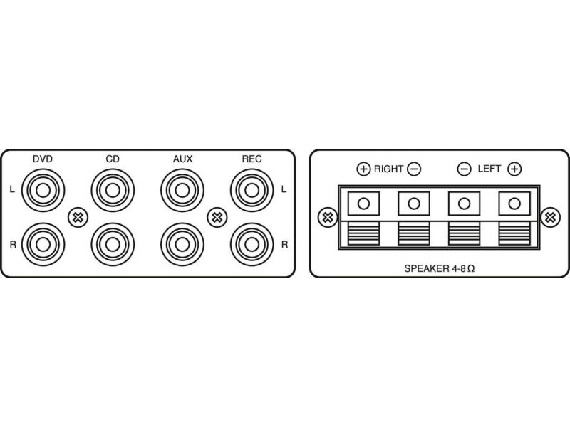 | Connections | 1 x RCA L/R (line), 1 x 6.3 mm jack (mic), 1 x RCA L/R (rec.), 4 x spring-load. speaker term. (speakers) |