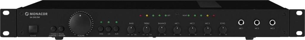 Prehľadne štrukturovaný obslužný panel SA-230/SW je lákavý pre počúvanie a špeciálne pre tvorenie hudby. Bez problémov je možné miešať jeden z troch linkových stereo zdrojov s jedným z troch mono mikrofónnych zdrojov. V kombinácii so špeciálnymi karaoke CD alebo DVD sú k dispozícii funkcie ako "one-touch karaoke" alebo "vocal partner". Na mikrofónne kanály je možné dodať nastaviteľné digitálne echo ako efekt. Bezventilátorové chladenie zosilňovača zaručuje tichú prevádzku. Moderné ochranné obvody chránia zariadenie pred preťažením, prehriatím a skratom.
