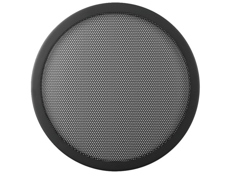 Dekoratívna mriežka na reproduktor Pre 25 cm (10“) reproduktory2 časti Montážny lem slúži na montáž reproduktora Kryt s kovovou mriežkou kryje reproduktor a je úplne pripevnený