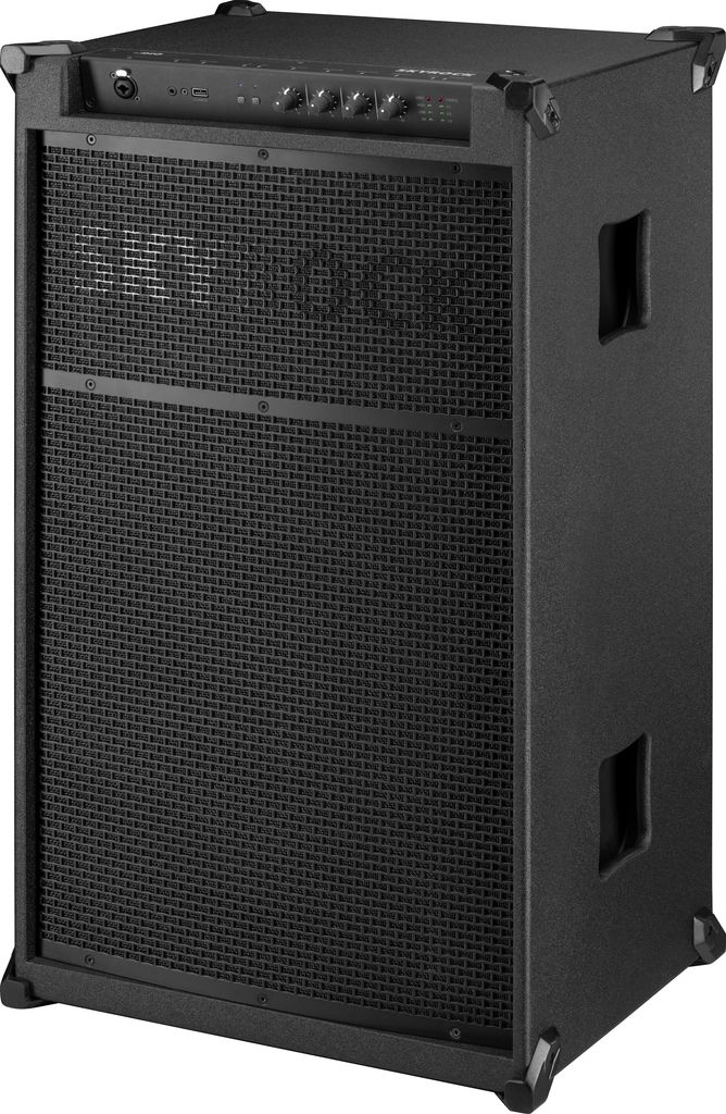 Portable PA speaker system, with integrated Bluetooth receiver. Operation via mains connection or optional rechargeable lead gel battery 12 V/18 Ah (operating time at moderate volume: up to 40 hours, operating time at full volume: up to 10 hours),...
