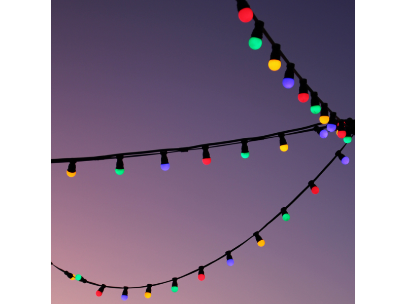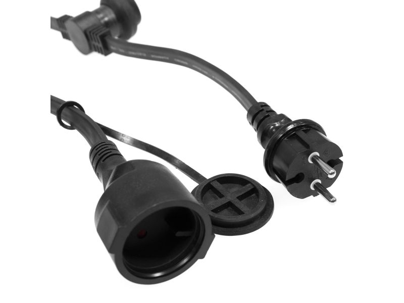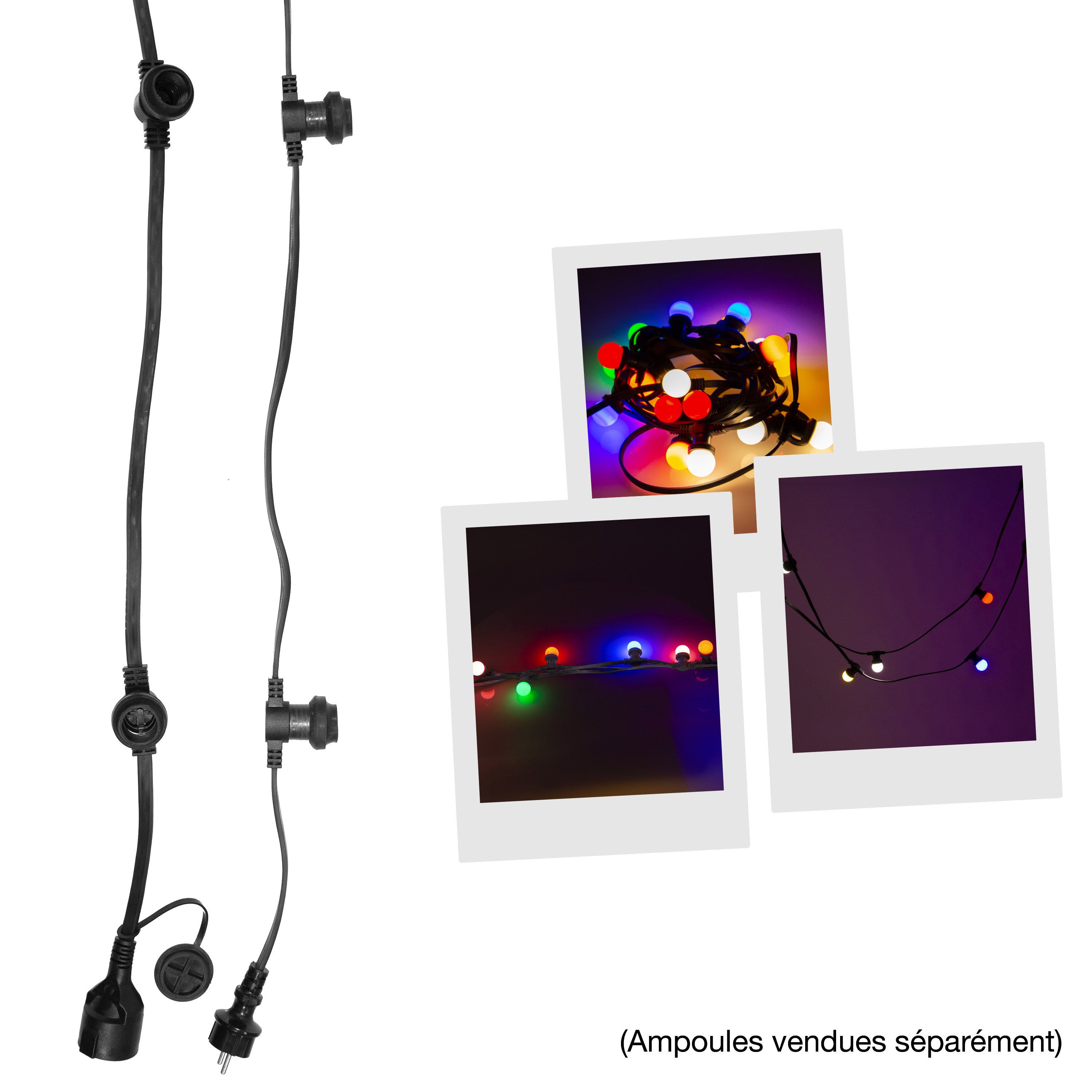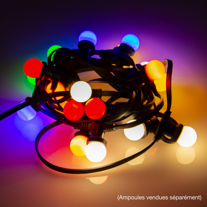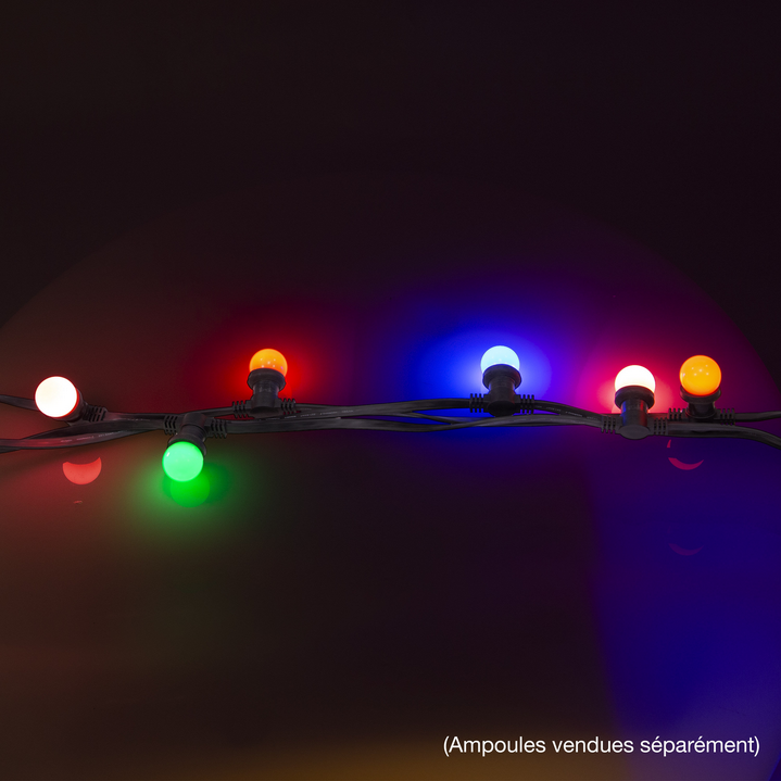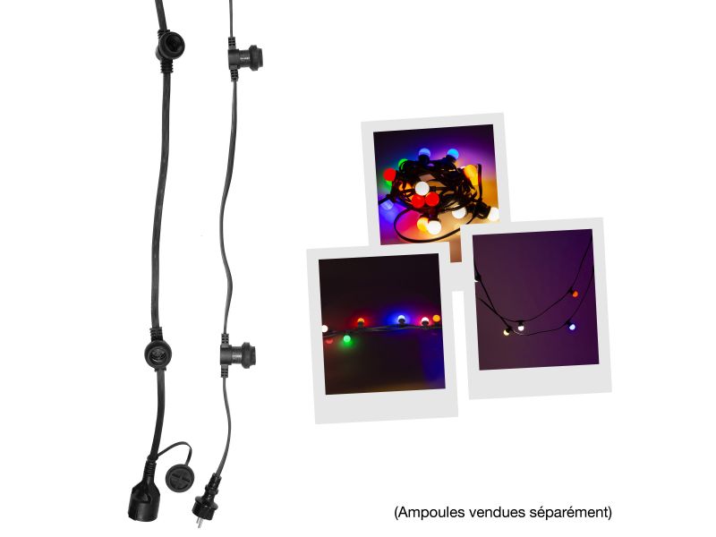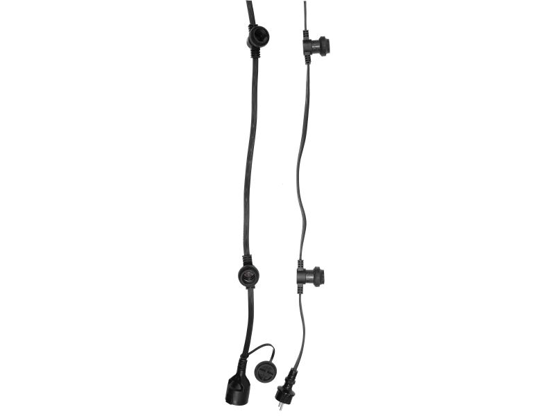 Party light chain 10M SL20-10M10 meters20 E27 sockets (without bulbs)Current input and outputBlack colorDELIVERED WITHOUT BULBSCompatible with any E27 socket bulb or LAMP#20WW / LAMP#20COL