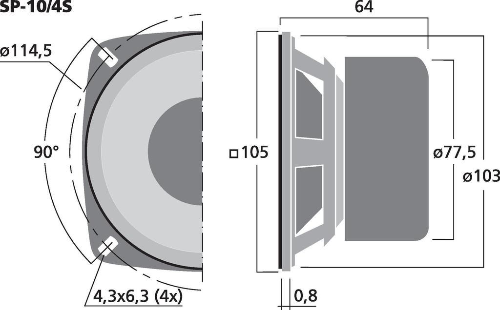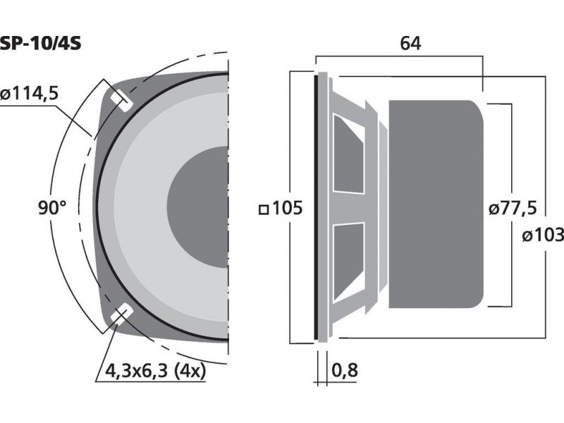 Univerzálny reproduktor, 15 W, 4 Ω Magnetické tienenie Širokopásmový reproduktor s vysokým výkonom Reprodukcia od cca. 80 Hz