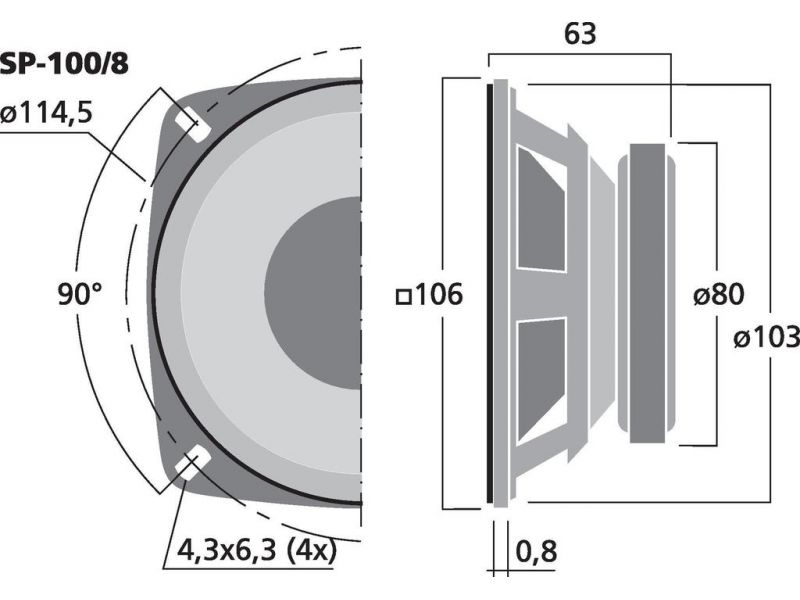 Hi-fi stredobasový reproduktor, 30 W, 8 Ω Robustný papierový kužeľ Vysoko kvalitná hliníková cievka Vyvŕtané pólové jadro Gumový rám Vynikajúca radiácia a prechodná odozva