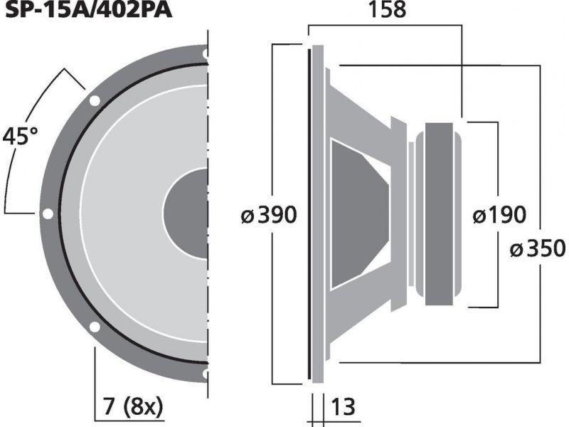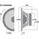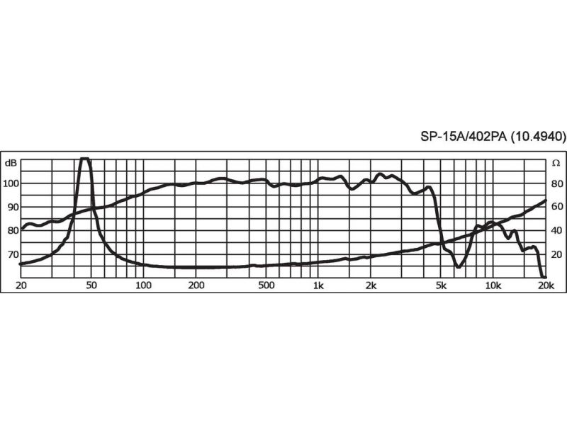 Profesionálny PA basový reproduktor, 400 W, 8 Ω Veľmi vysoký výkon 38 cm (15") profesionálny basový reproduktor s dlhou exkurziou Liaty kôš Vodu odpodzujúca membrána Veľmi kvalitné spracovanie prednej časti koša Dôsledná frekvenčná odozva Vysoká účinno...