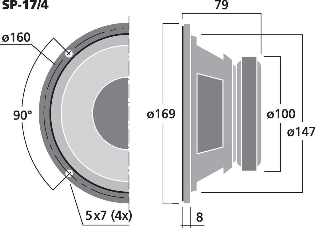 Univerzálny reproduktor, 30 W, 4 Ω Na všeobecné použitie a ako náhradný reproduktor Vysoký výkon Na použitie v stredobasovej oblasti