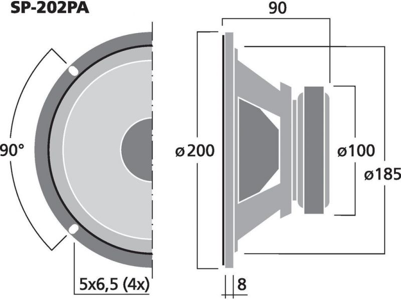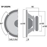 Univerzálny stredobasový reproduktor, 50 W, 8 Ω pre stredobasové aplikácie, tiež vo výkonových reproduktorových systémoch.