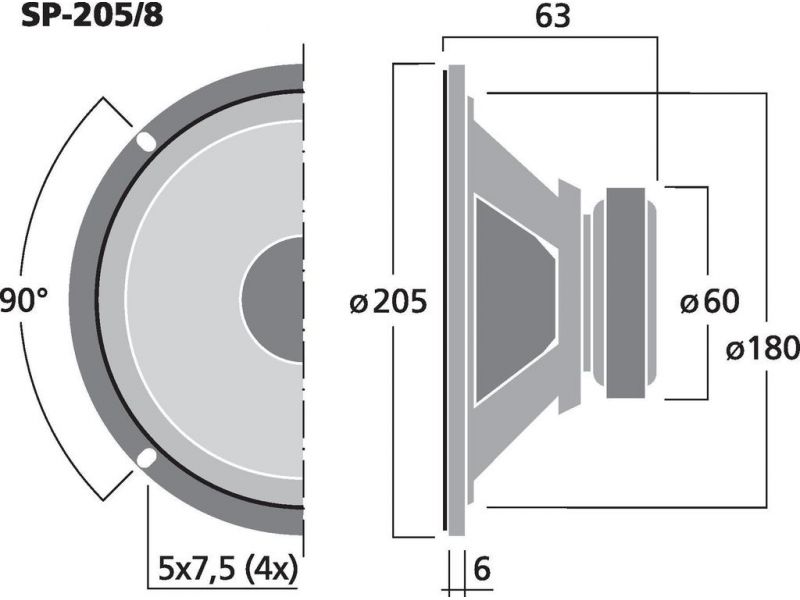 | Type of speaker | 8" |