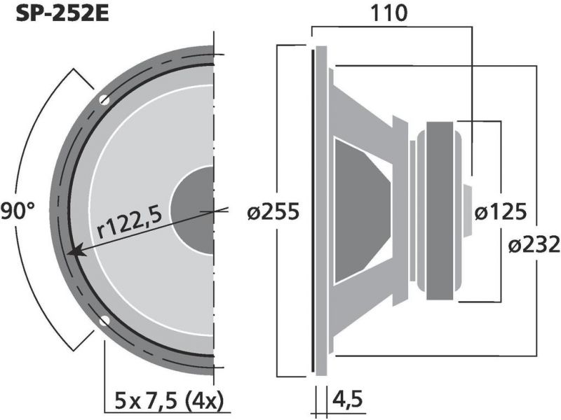 Hi-fi stredobasový reproduktor, 75 W, 4 Ω Viacúčelový reproduktor Penový priestor Náhradný reproduktor pre uzavreté systémy