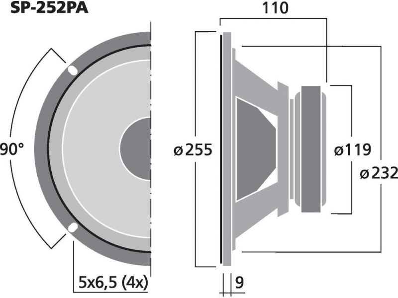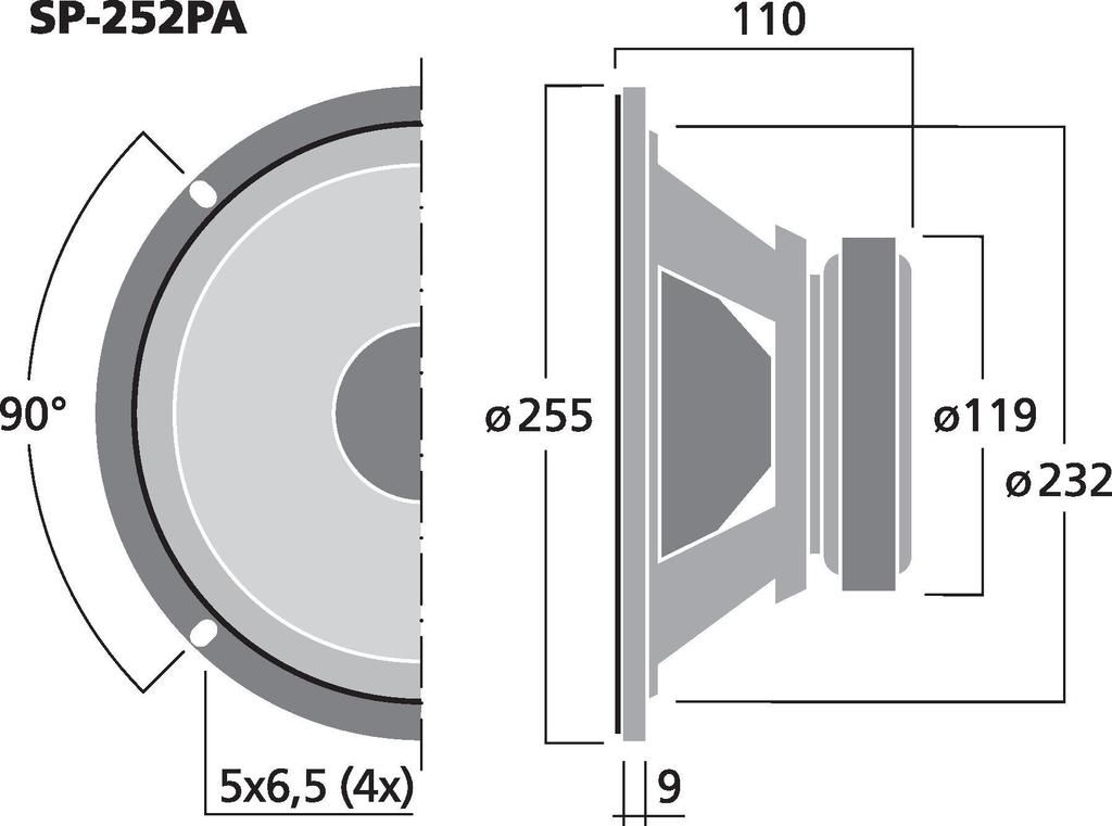 Univerzálny stredobasový reproduktor, 75 W, 8 Ω pre stredobasové aplikácie, tiež vo výkonových reproduktorových systémoch.