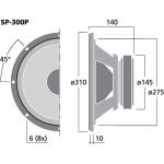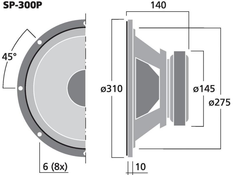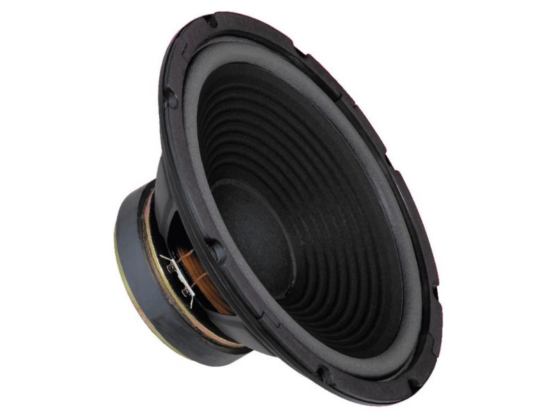 Basový reproduktor, 100 W, 8 Ω s vyvŕtaným pólovým jadrom Stabilná papierová membrána pre reprodukciu basov s vysokým výkonom