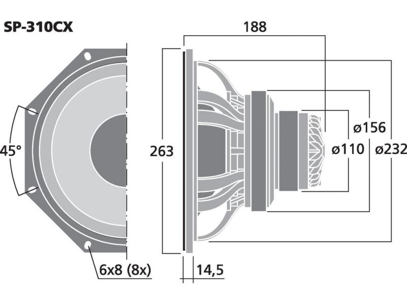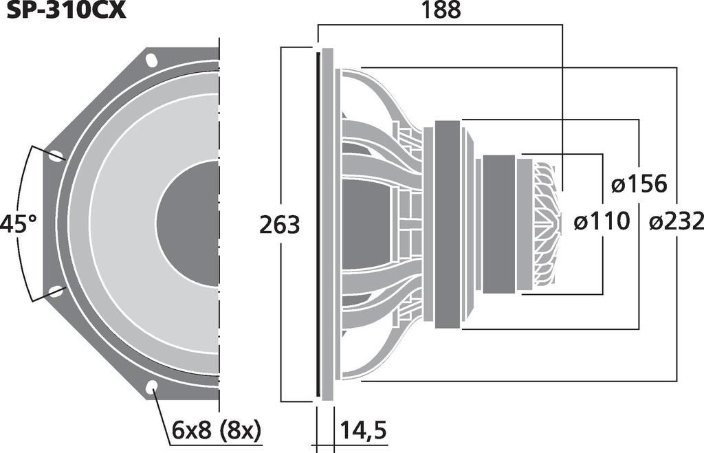 2-pásmový koaxiálny PA reproduktor, s integrovaným horn tweeterom. Vysoko výkonný 25 cm PA basový reproduktor (10 ") s vysokou účinnosťou Koaxiálne usporiadaný výškový reproduktor s 25 mm (1 ", kmitočet cievky = 44 mm) vysokofrekvenčným meničom Vynikaj...