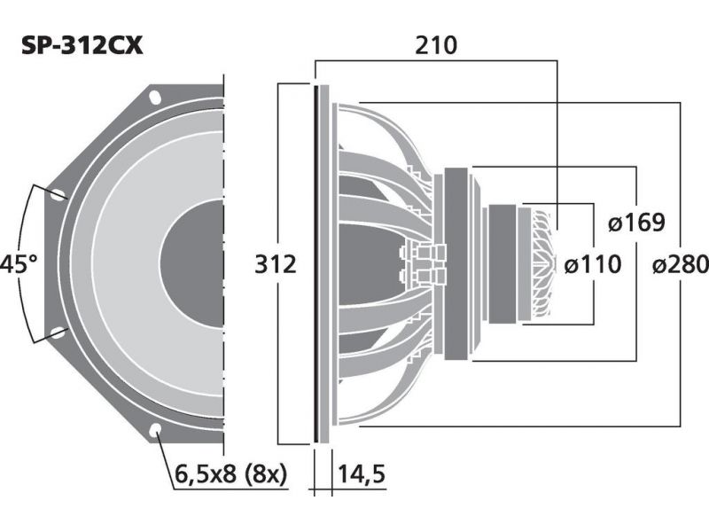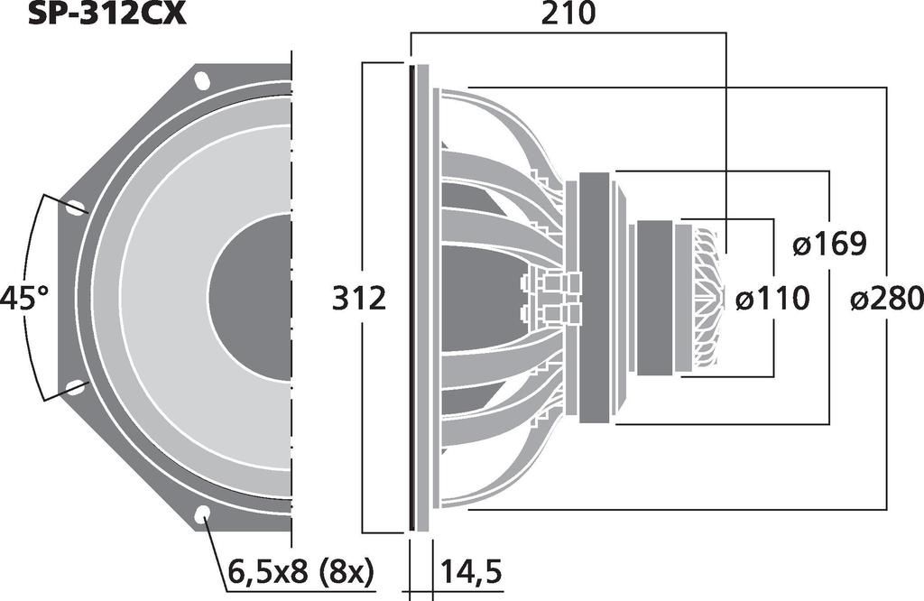 2-pásmový koaxiálny PA reproduktor, s integrovaným horn tweeterom. 30 cm (12") PA basový reproduktor vysokej schopnosti napájania a vysokej účinnosti Koaxiálne usporiadaný výškový reproduktor s 25 mm (1", hlasová cievka = 44 mm) vysokofrekvečný driver V...