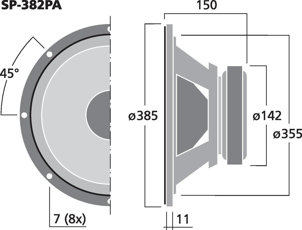 Univerzálny basový reproduktor, 150 W, 8 Ω Pre basové aplikácie, tiež v systémoch výkonových reproduktorov.