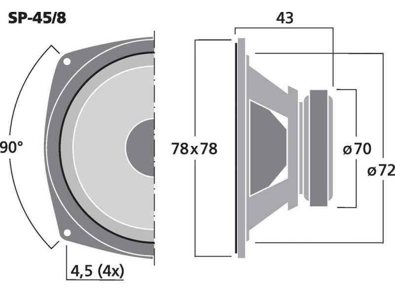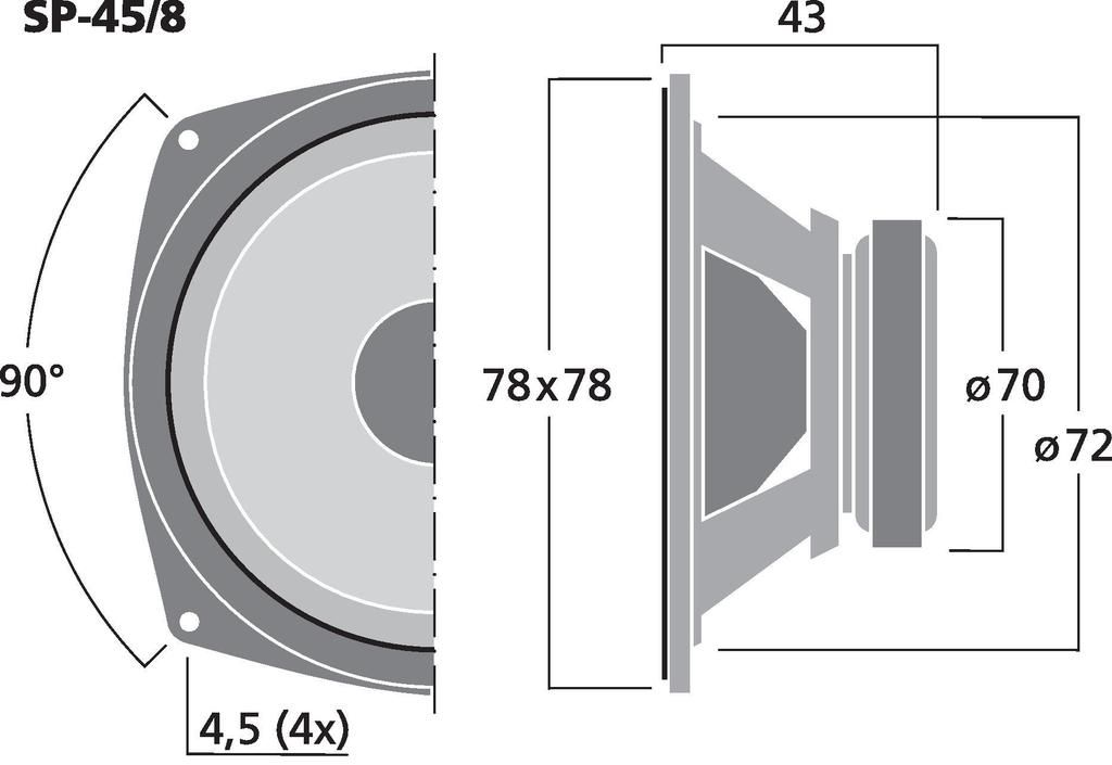 Basovostredové reproduktory, 20 W, 8 Ω (/8) and 4 Ω (/4) Obzvlášť vhodný pre mini reproduktorové systémy a stĺpové reproduktory.