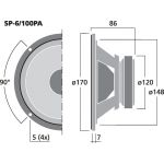 PA stredobasový reproduktor, 100 W, 8 Ω Veľmi lineárna frekvenčná odozva Vysoká efektivita Perfektný reproduktor stredného rozsahu pre výkonné 3-smerové usporiadanie v poloprofesionálnej oblasti