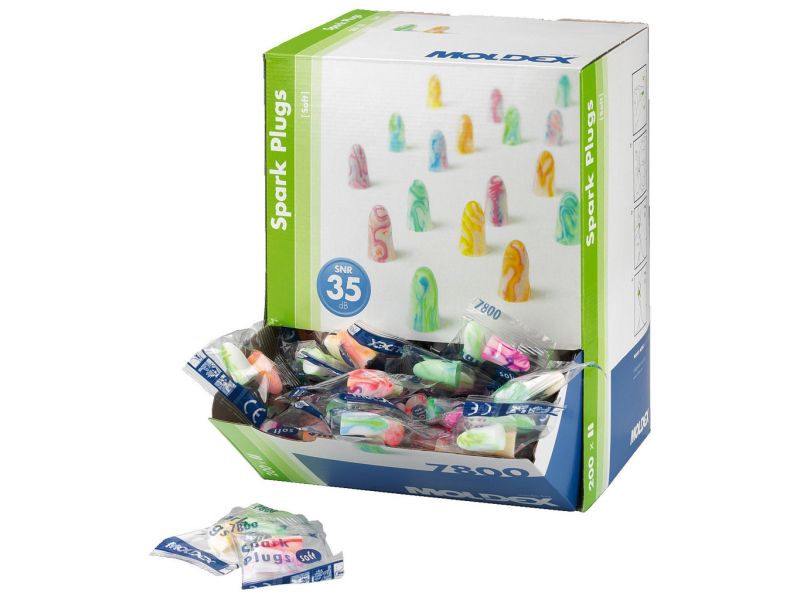 Dávkovač 200x SPARKPLUG, pre vyššiu spotrebu napr. na veľkých podujatiach a v spoločnostiach s vysokou mierou hluku. Stredná absorpcia: 35 dBPodľa EN 352200 párov farebných špuntov do uší, každý pár hygienicky balený v transparentnom obaleŠpunty do uší...