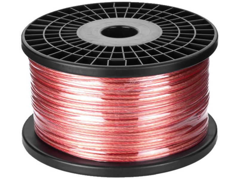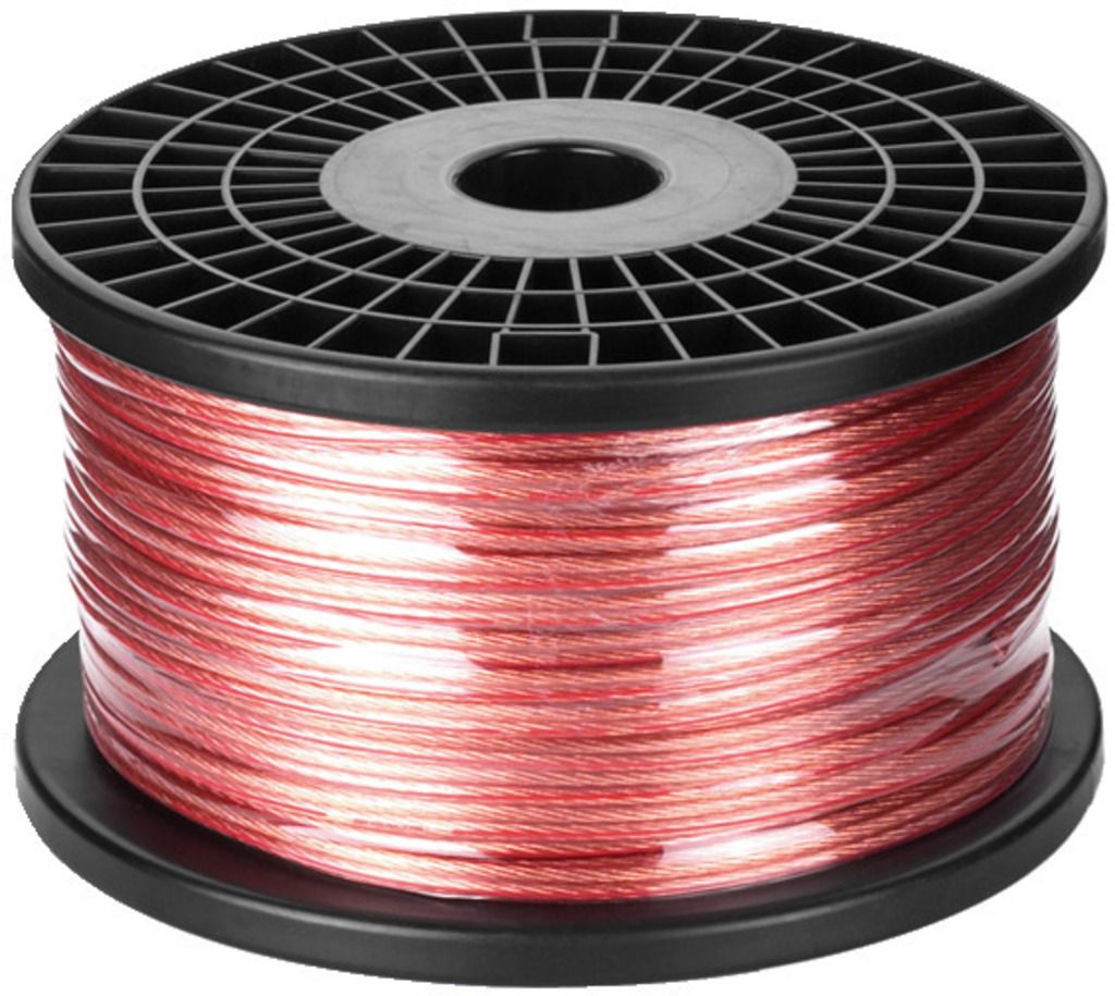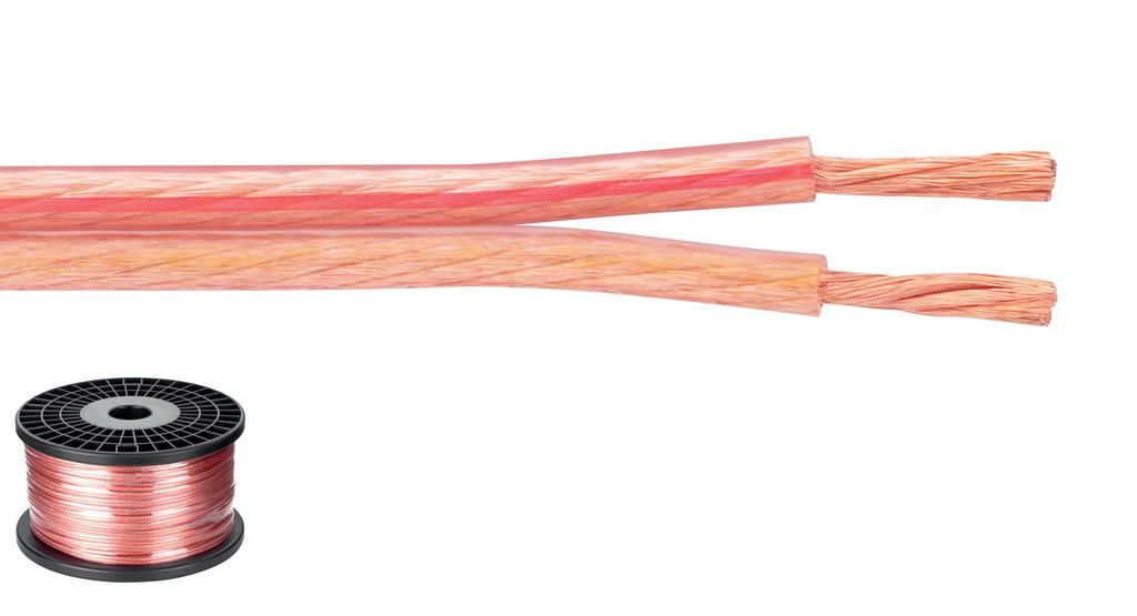 Reproduktorový kábel TOP KVALITA, VYSOKÁ FLEXIBILITA 100 m kotúč Priehľadná izolácia s červeným kódovaním jadra