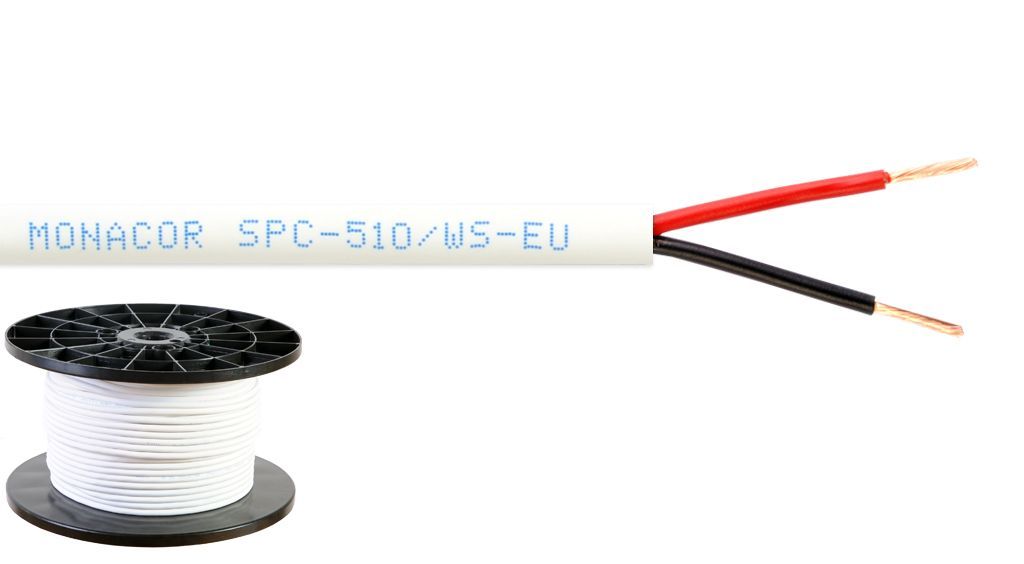 Reproduktorový kábel "MADE IN EU" Prierez: 2x1,0 mm² Dĺžka: 100 m Farba: Biela Žily vyrobené z vysoko kvalitnej OFC medi (v súlade s normou PN-EN 60228, trieda V) Odolný PVC plášť: Chráni kábel pred poškodením, oderom a poveternostný...