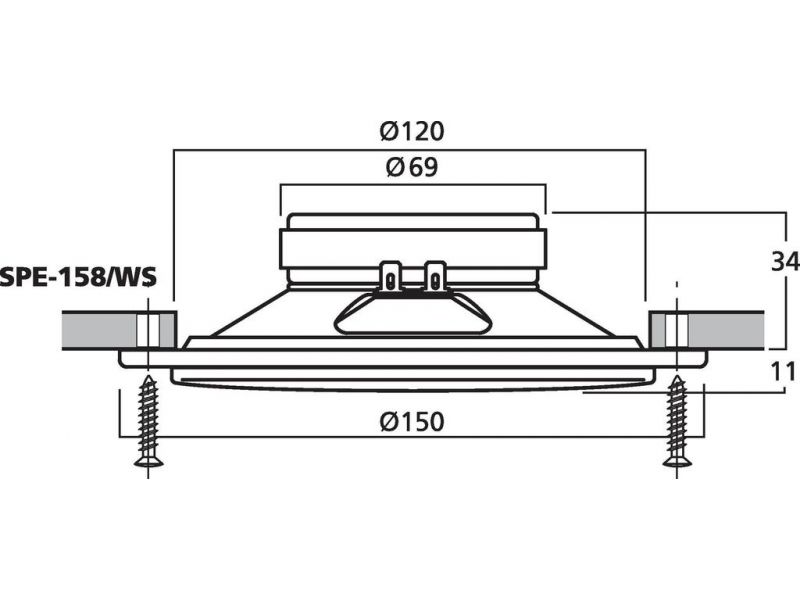 Širokopásmový reproduktor pod omietku, 15 W Duálny kužeľ Tenký dizajn s pevnou kovovou mriežkou